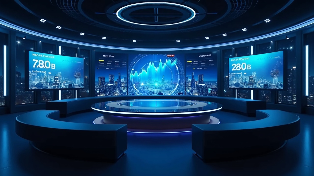 Futuristic newsroom scene with ASTER logo, live 12B chart and MEV trading visuals, decentralized city.