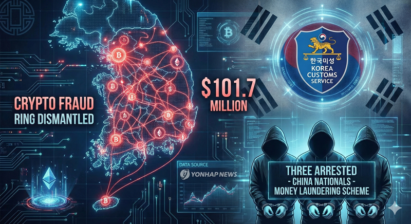 The South Korea Customs Service dismantled a criminal organization involved in a crypto fraud in South Korea totaling 101.7 million dollars. According to the official Yonhap report, three Chinese nationals were arrested for violating foreign exchange transaction laws through an asset laundering scheme.