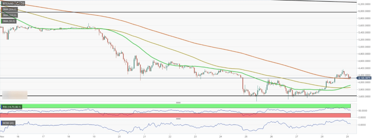 At the time of this writing, BTC / USD is maintained at $ 4,100 (SMA200 – 1 hour). If Bitcoin does not stand at this level, then the decline can continue to 4,000 US dollars. Cryptocurrency must be above this level in order to maintain a positive trend.