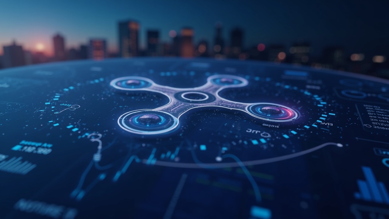 XRP logo centered on a futuristic trading dashboard with rising inflow bars toward 1B, custody vault icons and ETF labels, skyline.