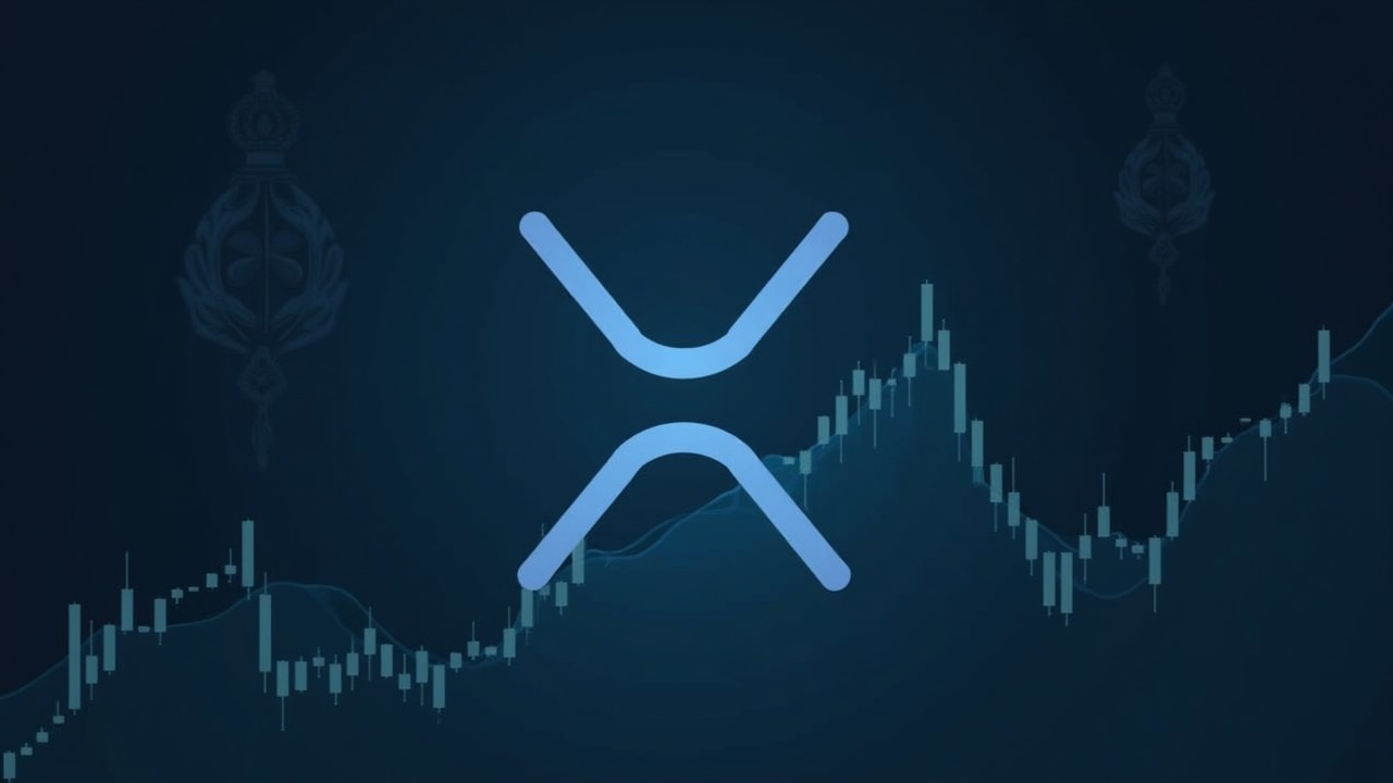 Realistic crypto header: XRP logo at center, bearish chart with triangle, regulatory background and subtle whale cues.